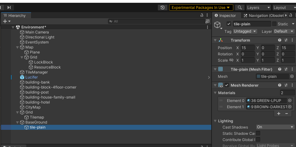 오늘은 TileManager 에서 배치하는 타일들이 원점이 타일 한쪽 끝에 있었던걸 중심을 기준으로 퍼져나가게 해주었고 Map > grid 하위의 오브젝트에 생성되는걸로 수정해주었다.