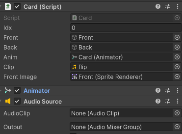 효과음은 총 두개를 넣었는데, 카드가 뒤집힐때 나는 소리와 카드를 맞췄을 때 파괴되면서 나는 소리이다.