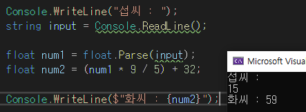 - 섭씨온도를 화씨온도로 변환하는 프로그램을 만들어주세요