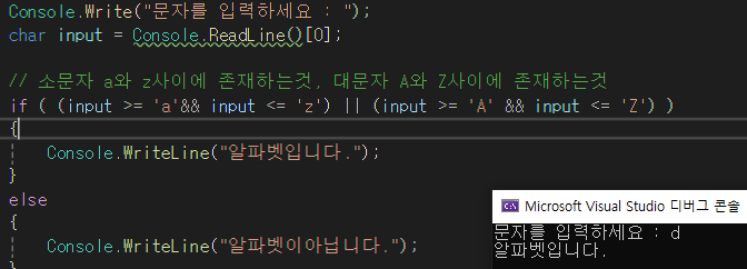 Console.WriteLine("알파벳입니다.");