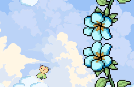 미니게임 중 캐릭터가 날아서 꽃과 구름을 피해서 가야하는 게임이 하나 있었는데, 꽃 위치를 넓게 하여 쉬운 난이도로 구상했으나 이건 깨지말라고 나온 게임과 같이 위아래가 계속 붙어서 나왔다.