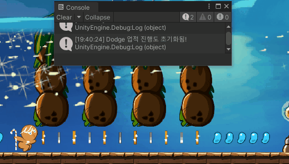 코인을 먹으면 콘솔창에 디버그로그로 띄울 수 있게 해두었다, 결과는 성공적!