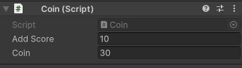 코인에는 AddScore를 추가했던 것처럼 SerializeField를 이용하여 Inspector에서 각각의 프리펩(오브젝트)에 코인값을 입력할 수 있게 해주었으며 다른 아이템과 동일하게 충돌하면 사라지고, 사라지면 아이템의 효과가 적용되는 방식이다.