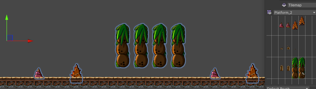 바닥과 장애물은 타일팔레트로, 아이템은 후술할 기능과 프리팹으로 해둔 오브젝트를 가져와 배치하였다.