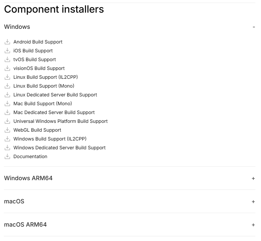모듈 추가는 Unity Hub > Installs(설치) > 원하는 버전 - 설정 > Add Module(모듈 추가) 로 가능하다.