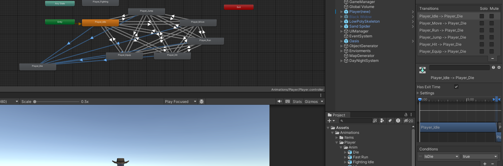 [Unity] 3D Surviver 팀 프로젝트 중, Player 사망처리 및 애니메이션